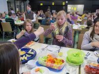 Zentrales Element unseres schulischen Zusammenlebens ist das gemeinsame Mittagessen. Alle Schülerinnen und Schüler essen klassenweise in der Mensa gemeinsam zu Mittag.