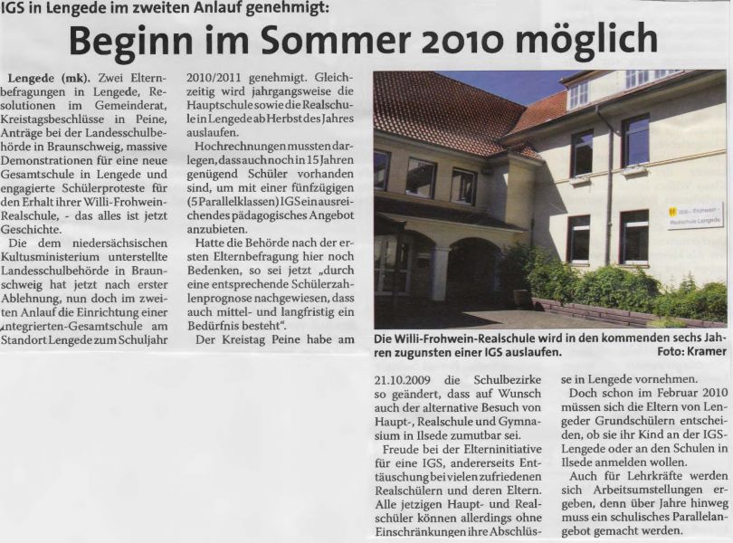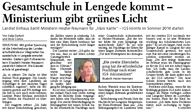 PN: "Gesamtschule in Lengede kommt - Ministerin gibt grünes Licht"