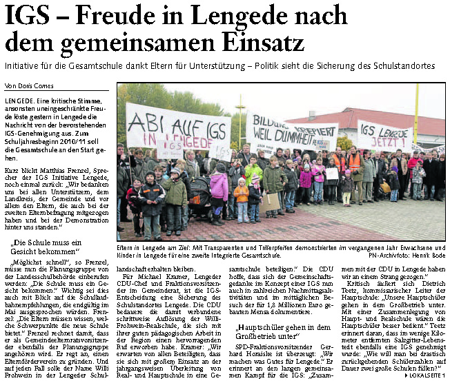 PN: "IGS - Freude in Lengede nach dem gemeinsamen Einsatz"
