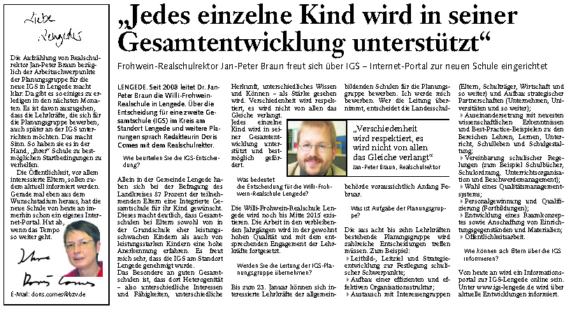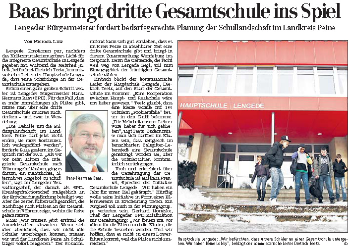 PAZ: "Gesamtschule Lengede: Braun wird Planungs-Chef"