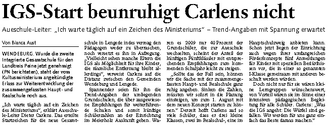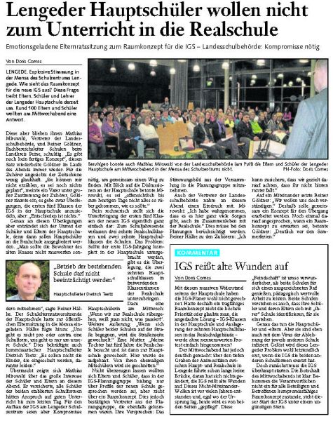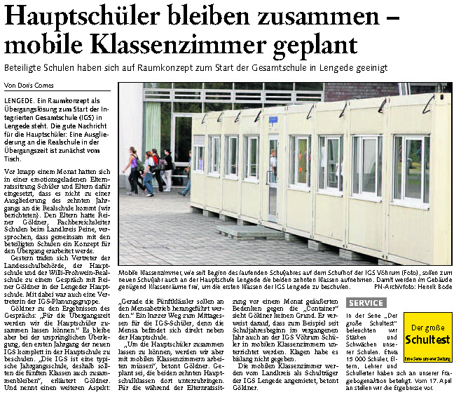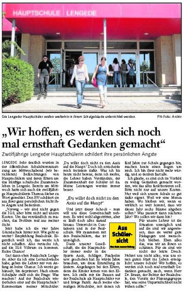 PN: "Lengeder Hauptschüler wollen nicht zum Unterricht in die Realschule"