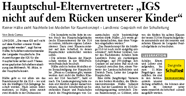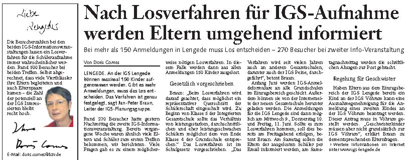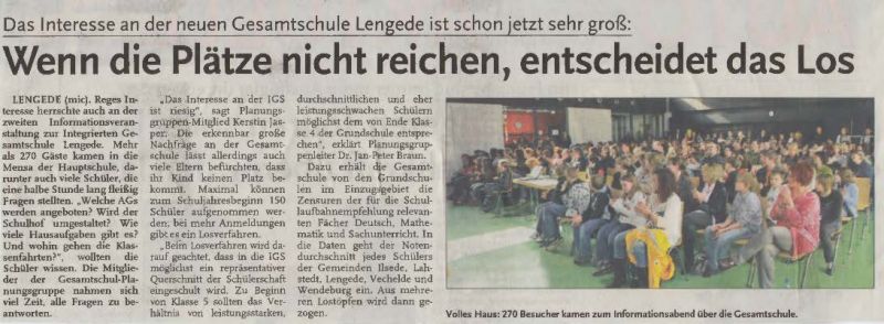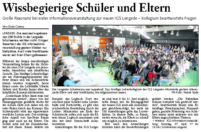 PN: "Heute Infoveranstaltung zur IGS Lengede"