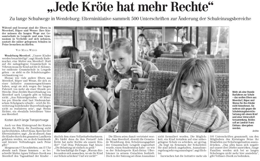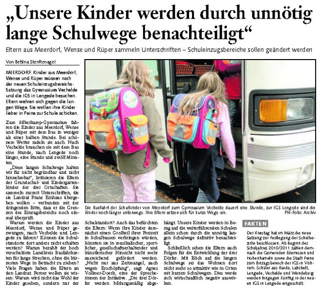 PAZ: "Langer Schulweg für Meerdorfer Schüler"
