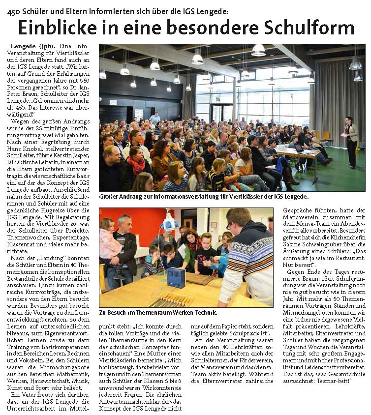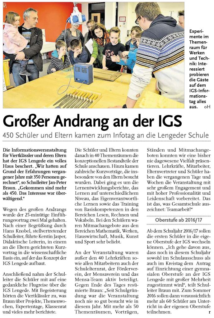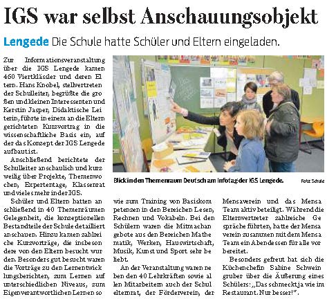RSB: "Anmeldetermine für die neuen 5. Klassen der IGS Lengede Schuljahr 2014/2015"