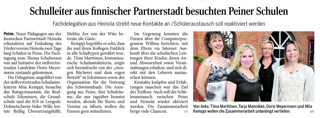 PN: "Peine und Heinola tauschen Schüler und Lehrer"