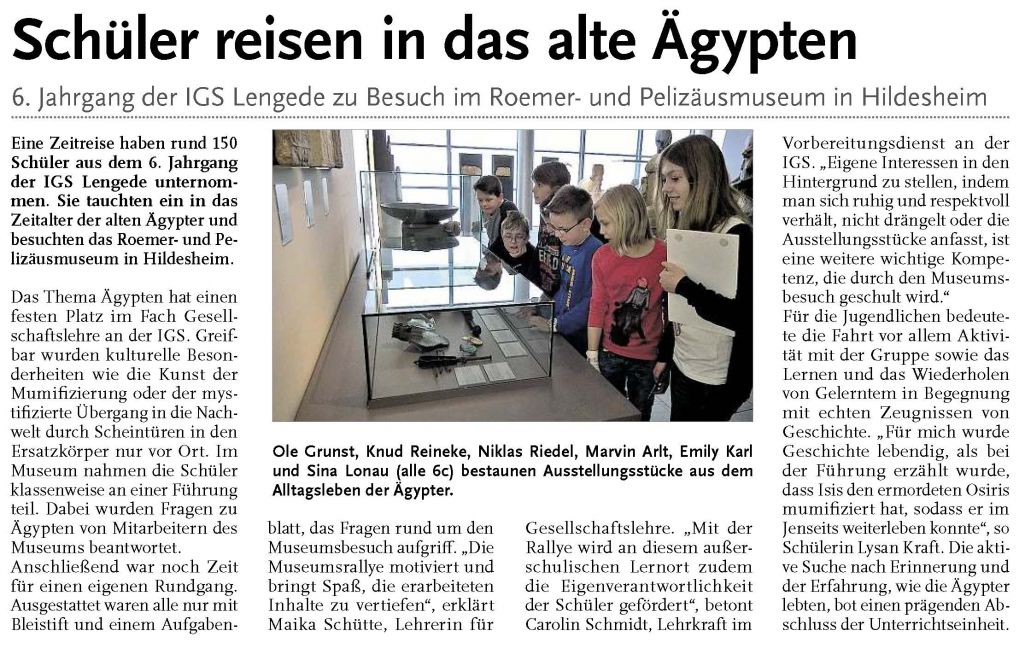 PAZ: "Schüler der IGS Lengede tauchten ins Zeitalter der Ägypter ein"