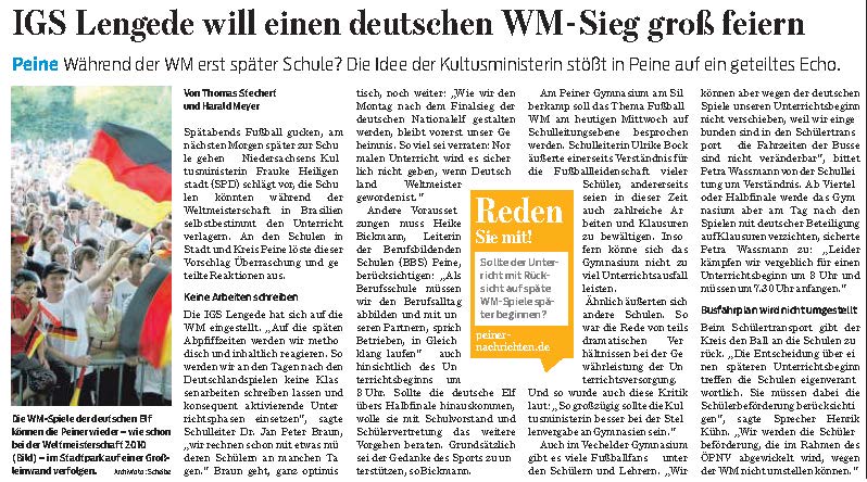 PN: "IGS Lengede will einen deutschen WM-Sieg groß feiern"