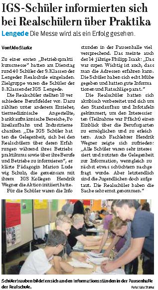 PN: "IGS-Schüler informierten sich bei Realschülern über Praktika"