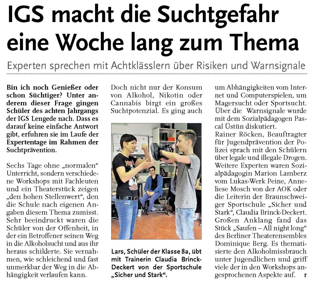 SZW: "IGS macht die Suchtgefahr eine Woche lang zum Thema"