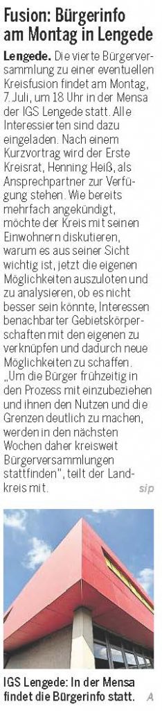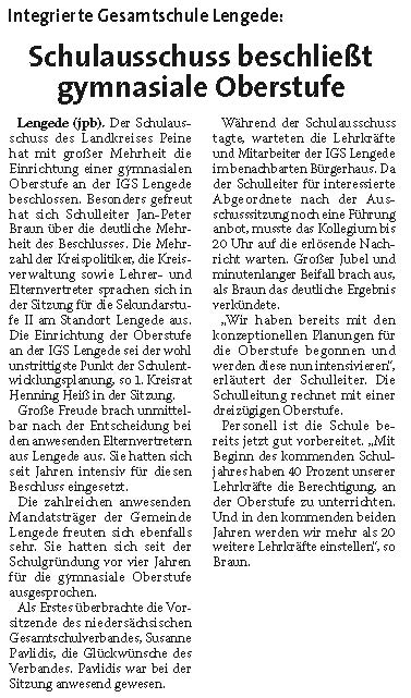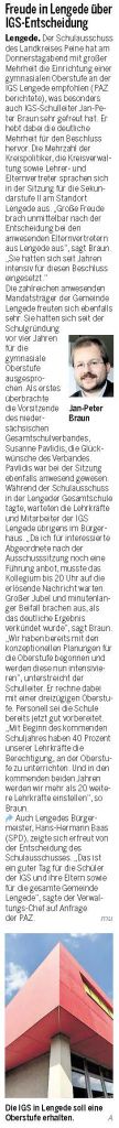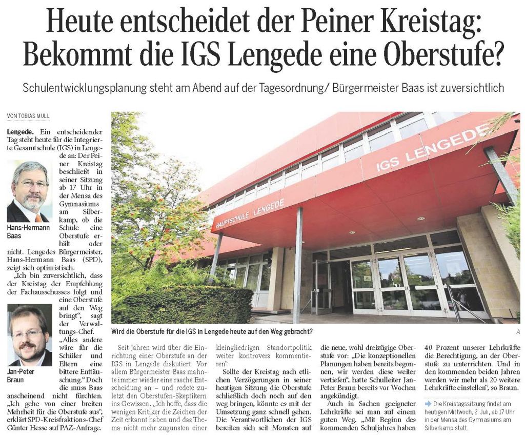 PAZ: "Heute entscheidet der Peiner Kreistag: Bekommt die IGS Lengede eine Oberstufe?"