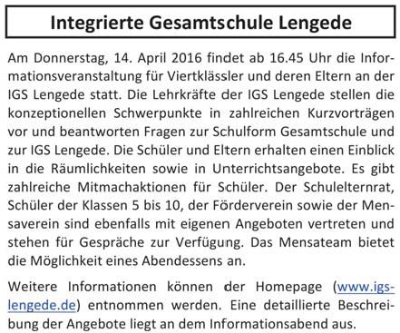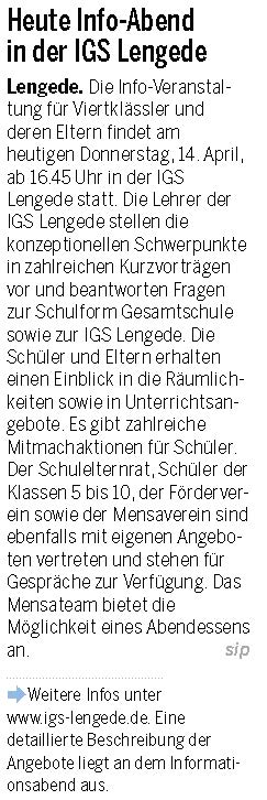 PAZ: "Heute Info-Abend in der IGS Lengede"