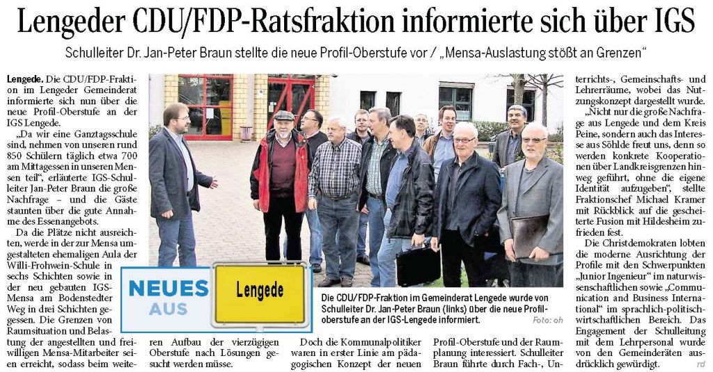 PAZ: "Lengeder CDU/FDP-Ratsfraktion informierte sich über IGS"