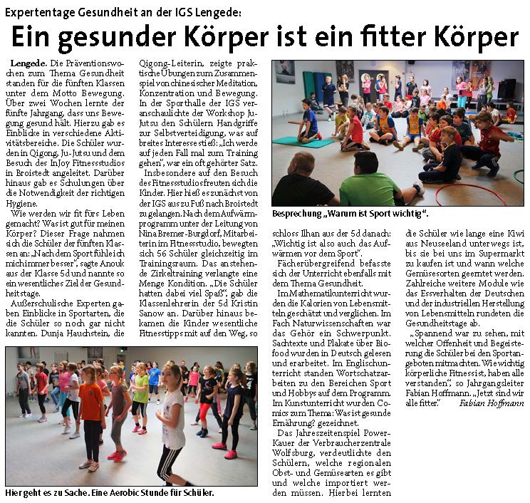 PAZ: "Aerobic, Qigong und Ernährung: Expertentage „Gesundheit“ bei der IGS"