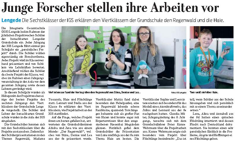 PAZ: "IGS Lengede: Sechstklässler präsentierten Projekte"