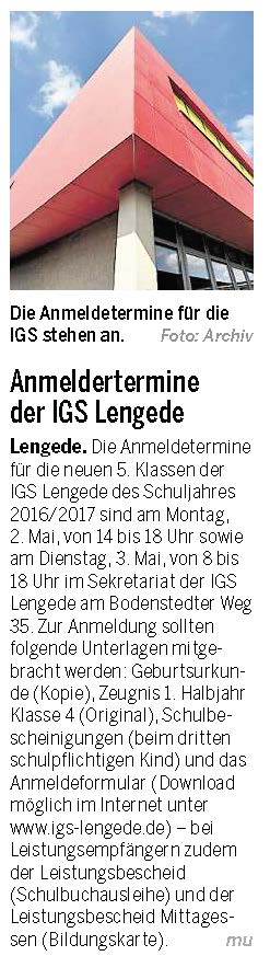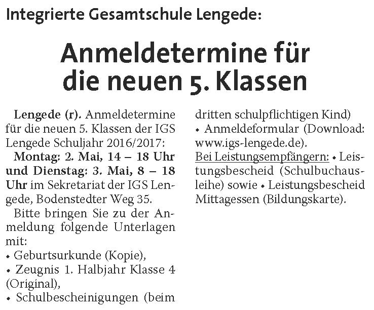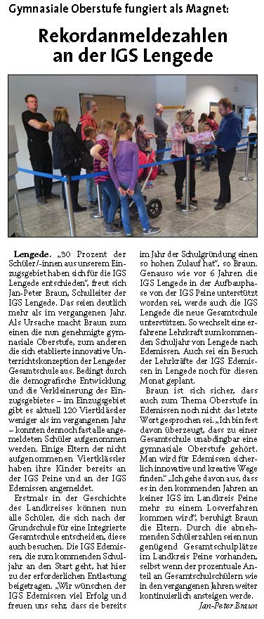 PAZ: "Rekordanmeldezahlen an der IGS Lengede"
