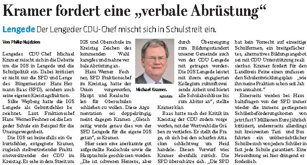 PAZ: "IGS-Streit: Kramer mahnt verbale Abrüstung an"