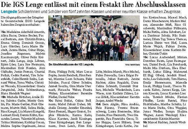 PAZ: "Abschlussklassen der Integrierten Gesamtschule Lengede"