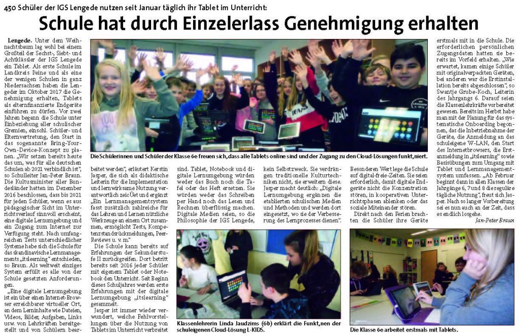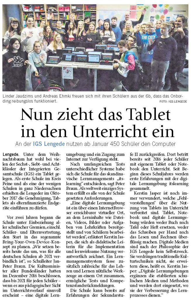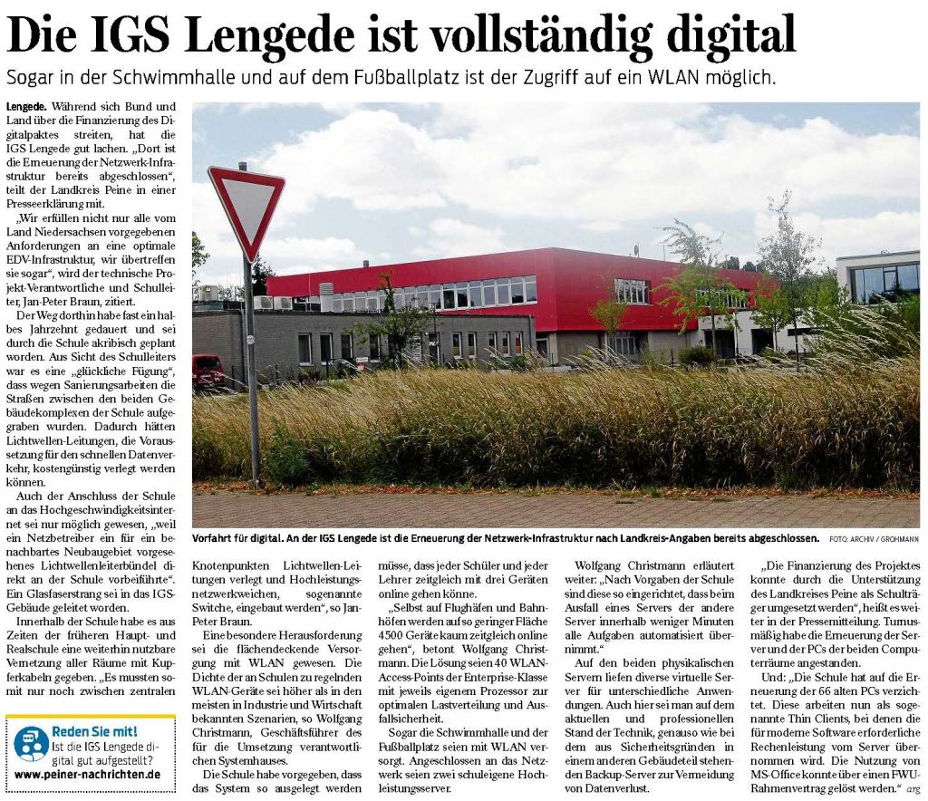 PAZ: "Digitalisierung: Schnelles Internet für die IGS Lengede"