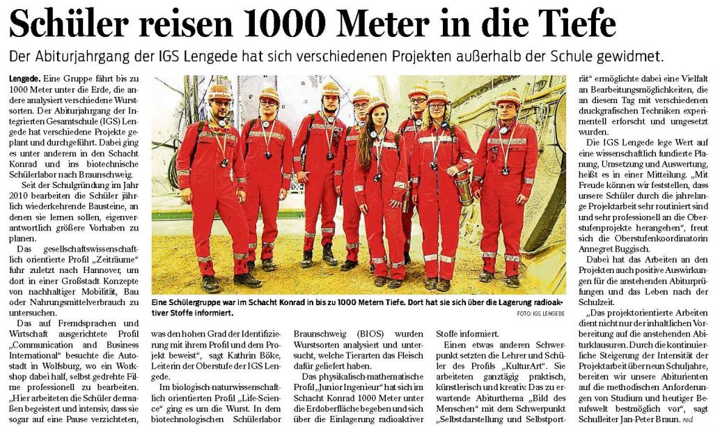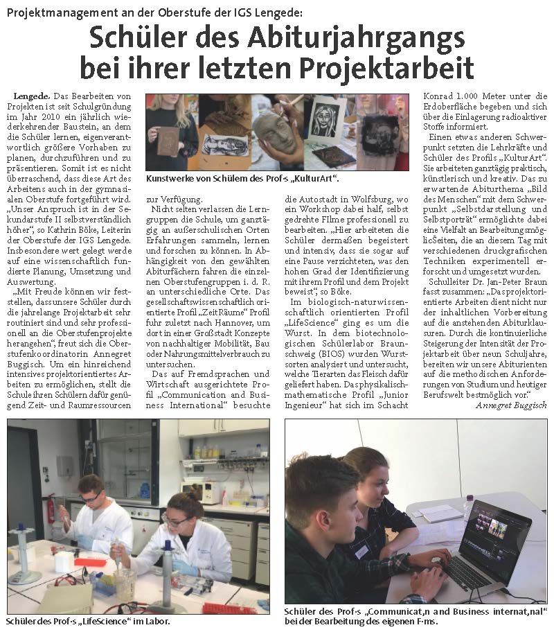 PAZ: "Lengeder IGS-Abiturienten sind fit in der Projektarbeit"