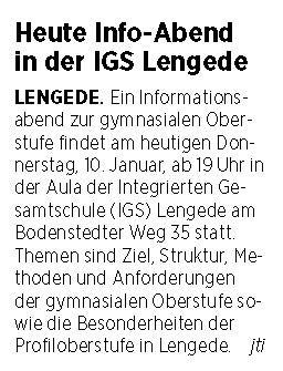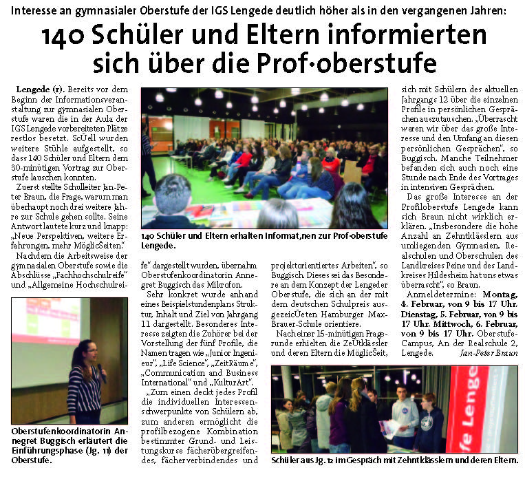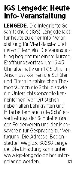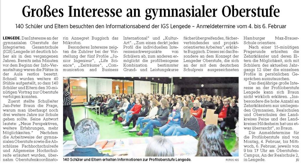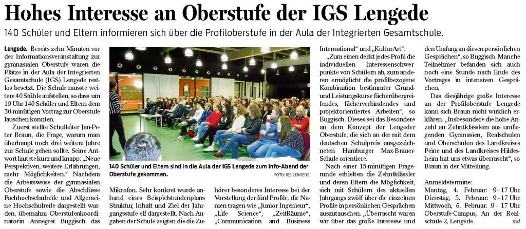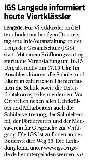 PAZ: "IGS Lengede: Heute Info-Veranstaltung"
