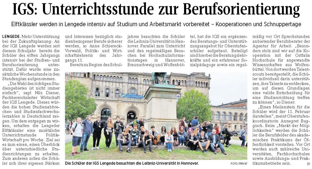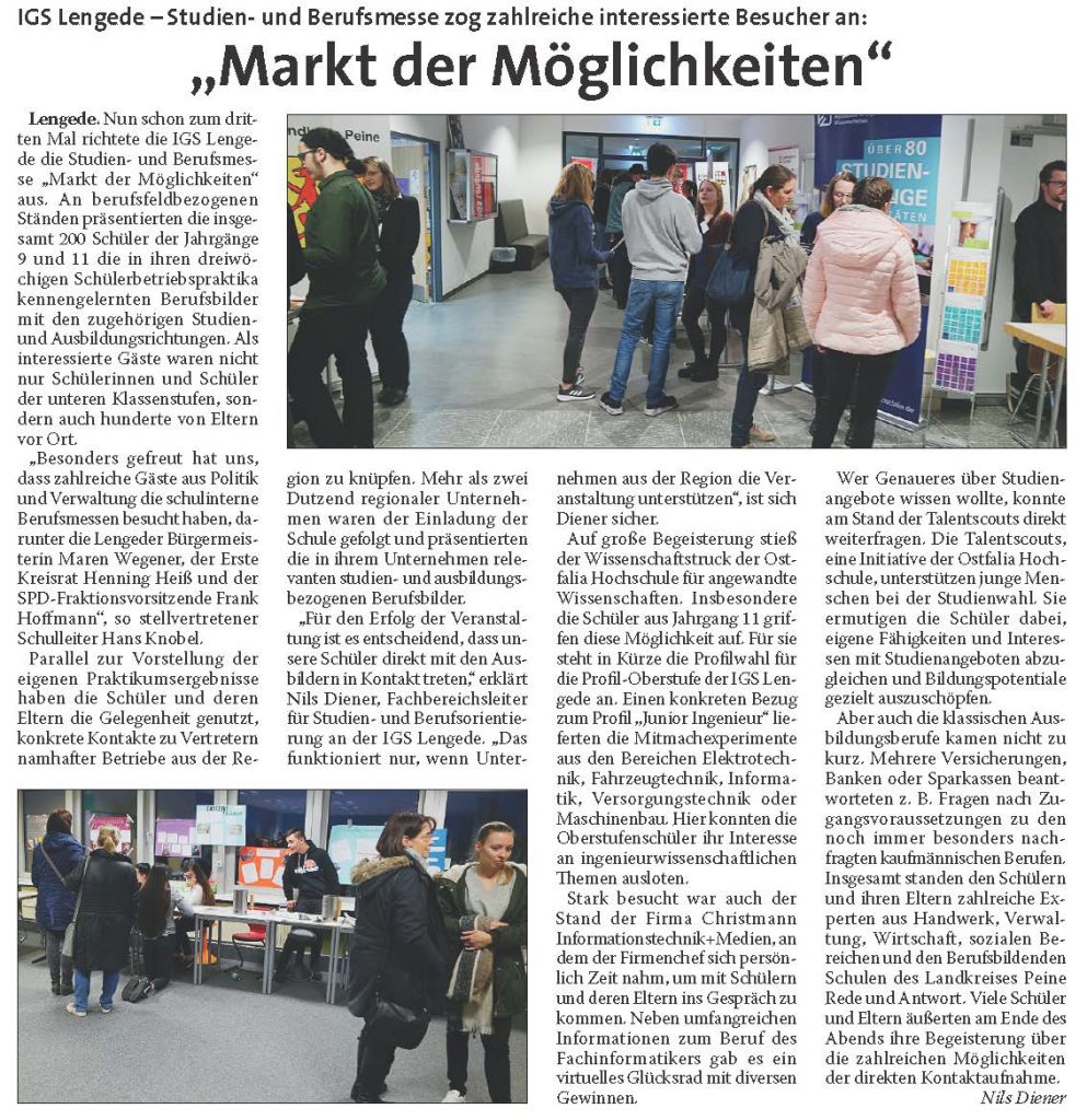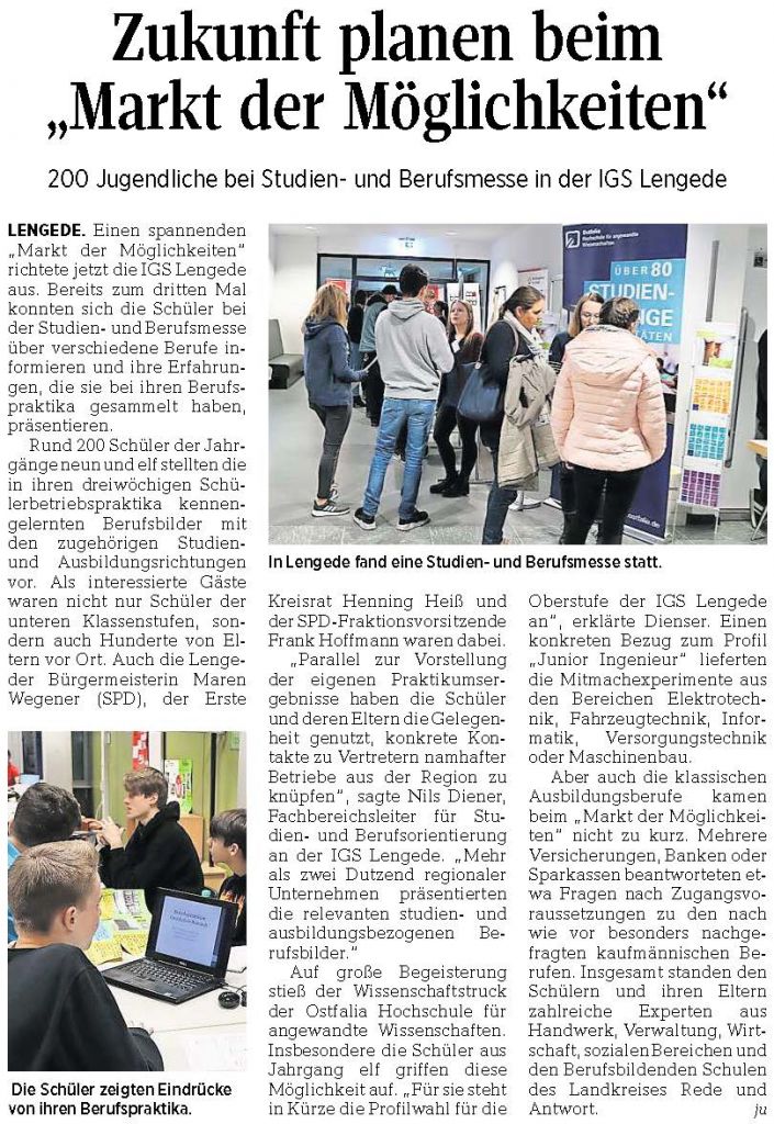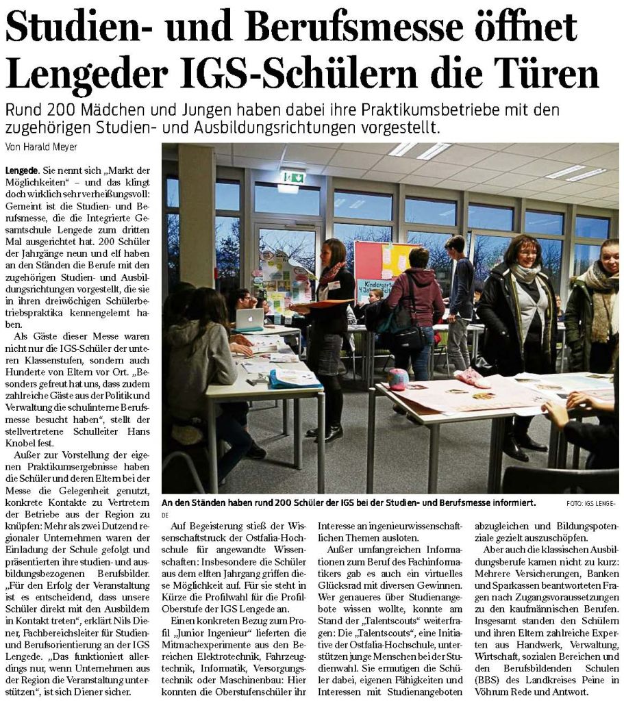 PN: "Studien- und Berufsmesse öffnet Lengeder IGS-Schülern die Türen"