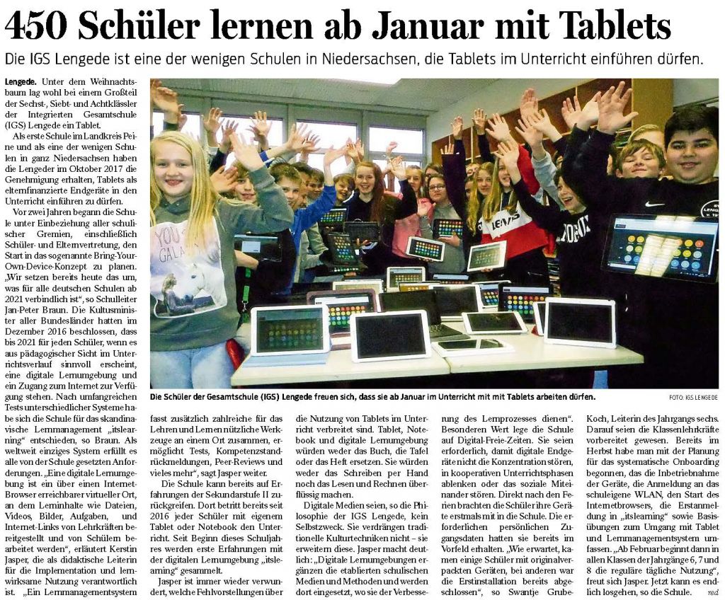 PN: "450 Schüler lernen ab Januar mit Tablets"