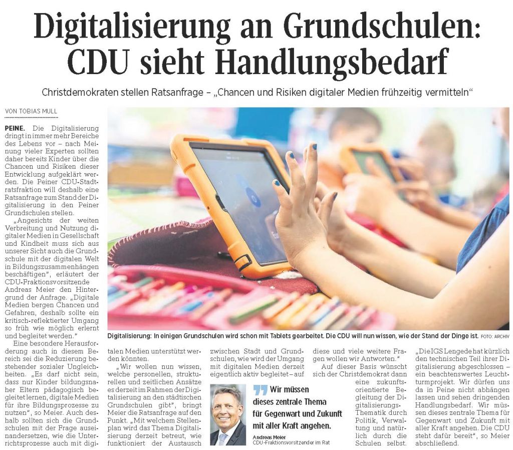 PAZ: "Digitalisierung an Grundschulen: CDU sieht Handlungsbedarf"
