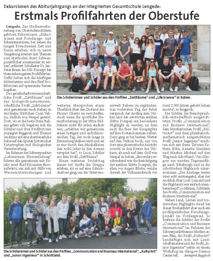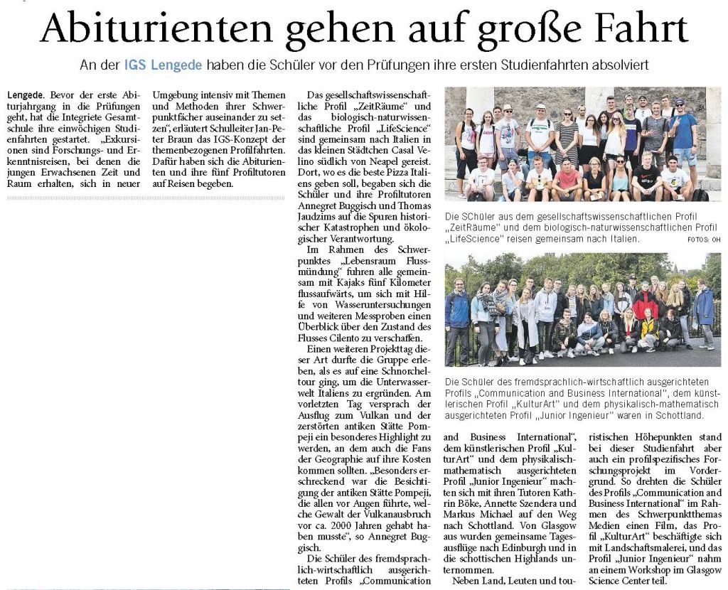 PAZ: "Schottland und Italien: IGS Lengede bot Profilfahrten an"