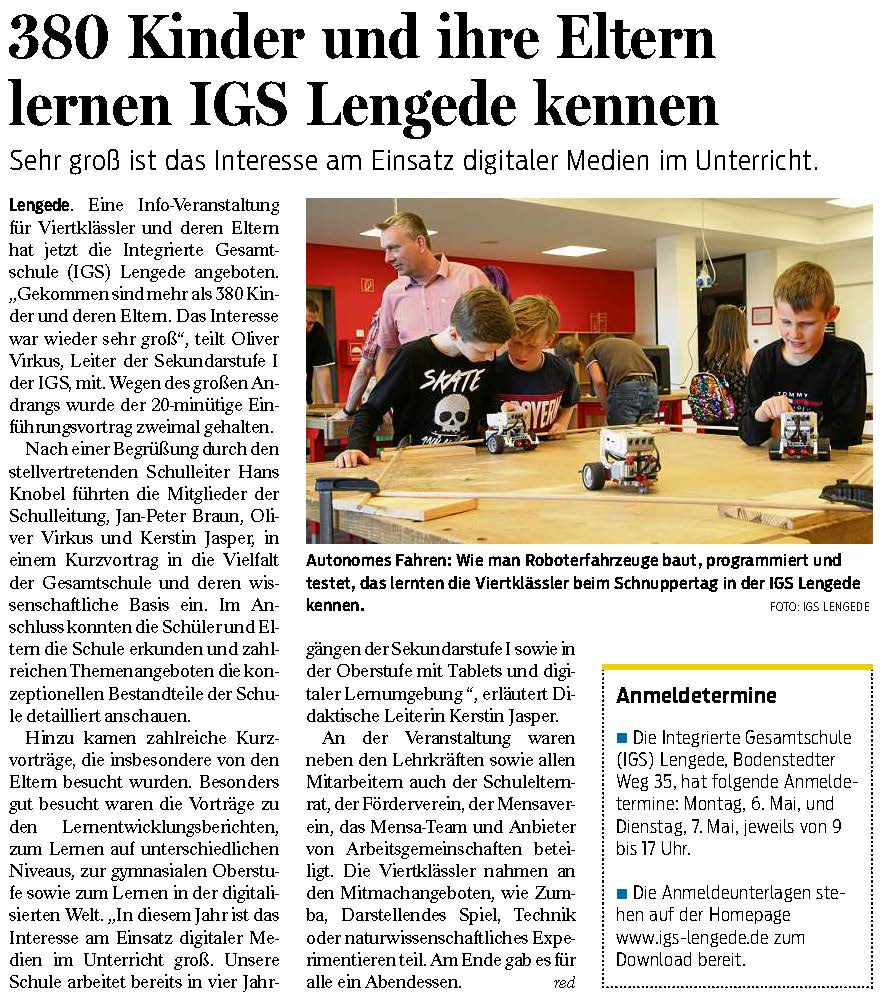 PN: "380 Kinder und ihre Eltern lernen IGS Lengede kennen"