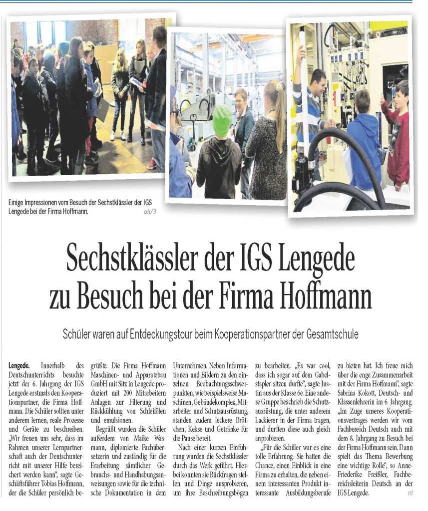 PAZ: "Sechstklässler der IGS Lengede zu Besuch bei der Firma Hoffmann"