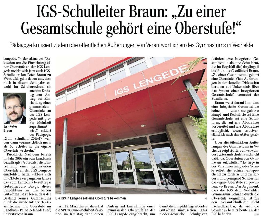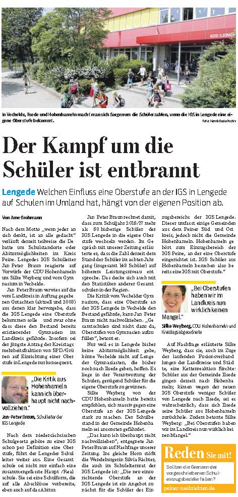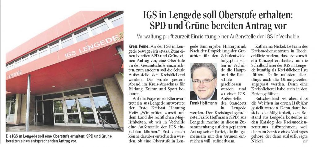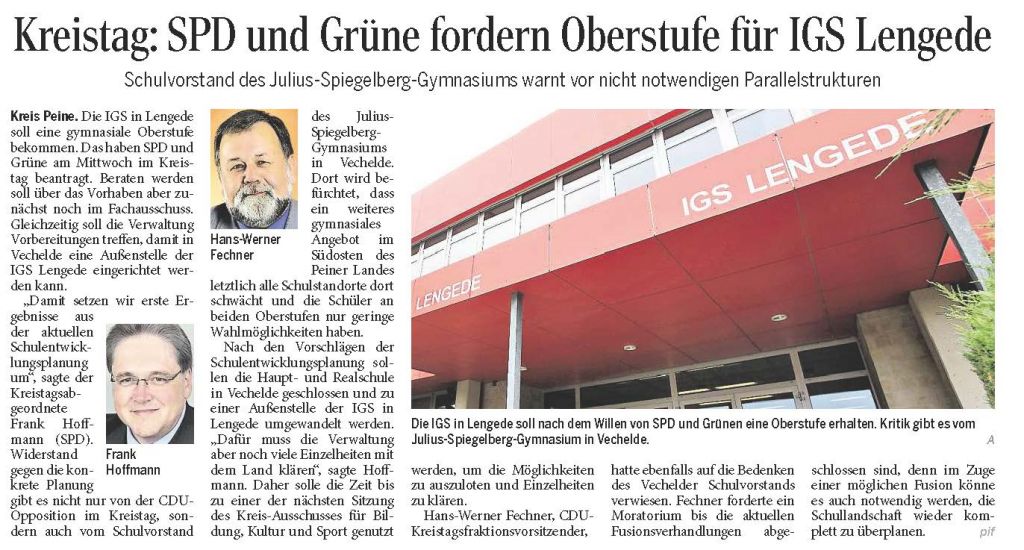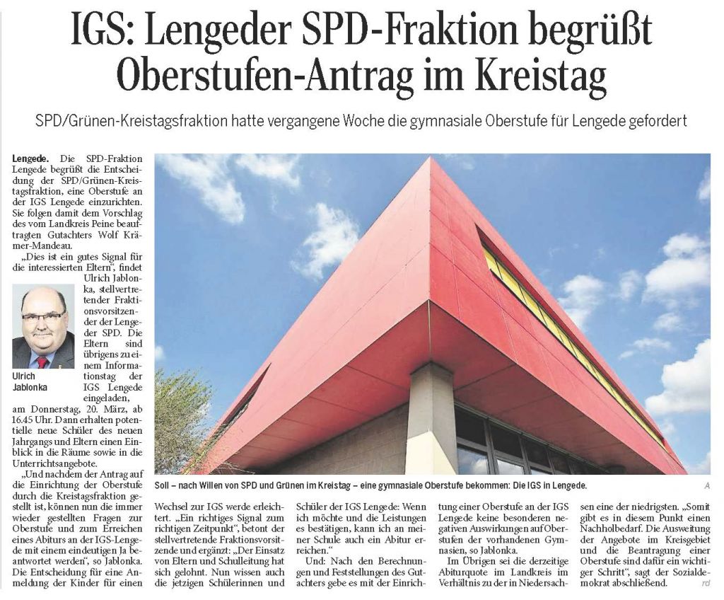 PAZ: "IGS: Lengeder SPD-Fraktion begrüßt Oberstufen-Antrag im Kreistag"