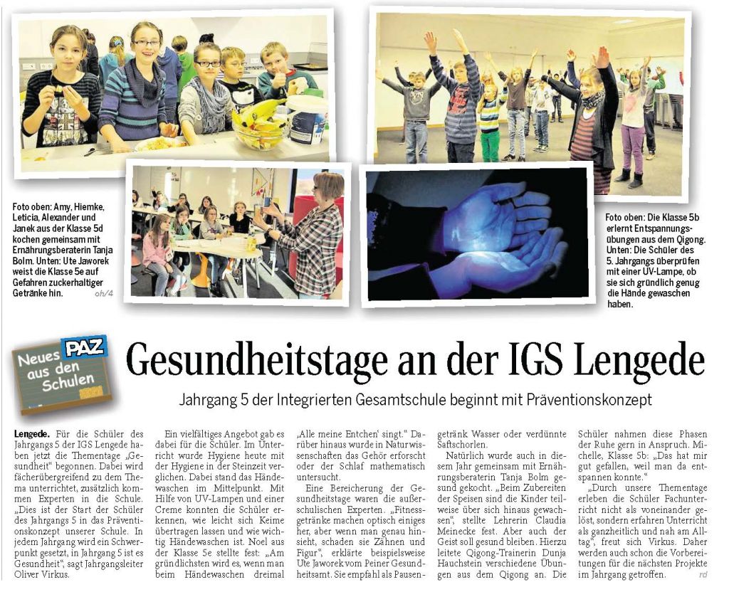 PAZ: "Gesundheitstage an der IGS Lengede"