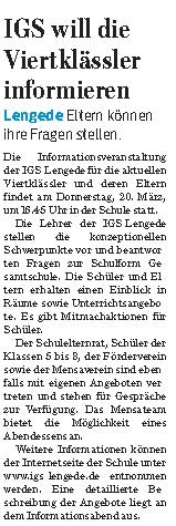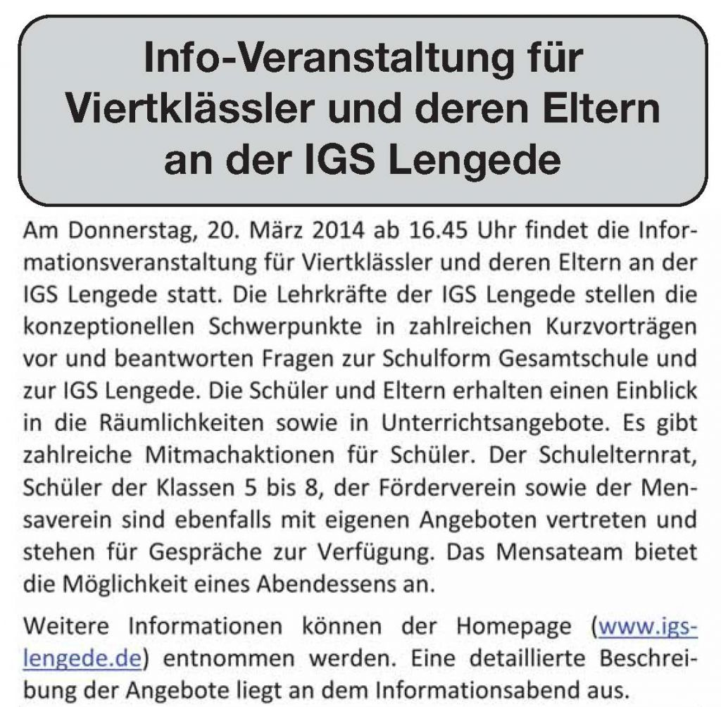 RSB: "Info-Veranstaltung für Viertklässler und deren Eltern an der IGS Lengede"