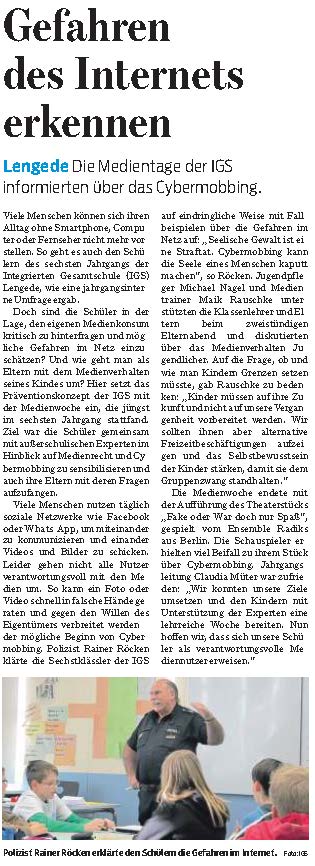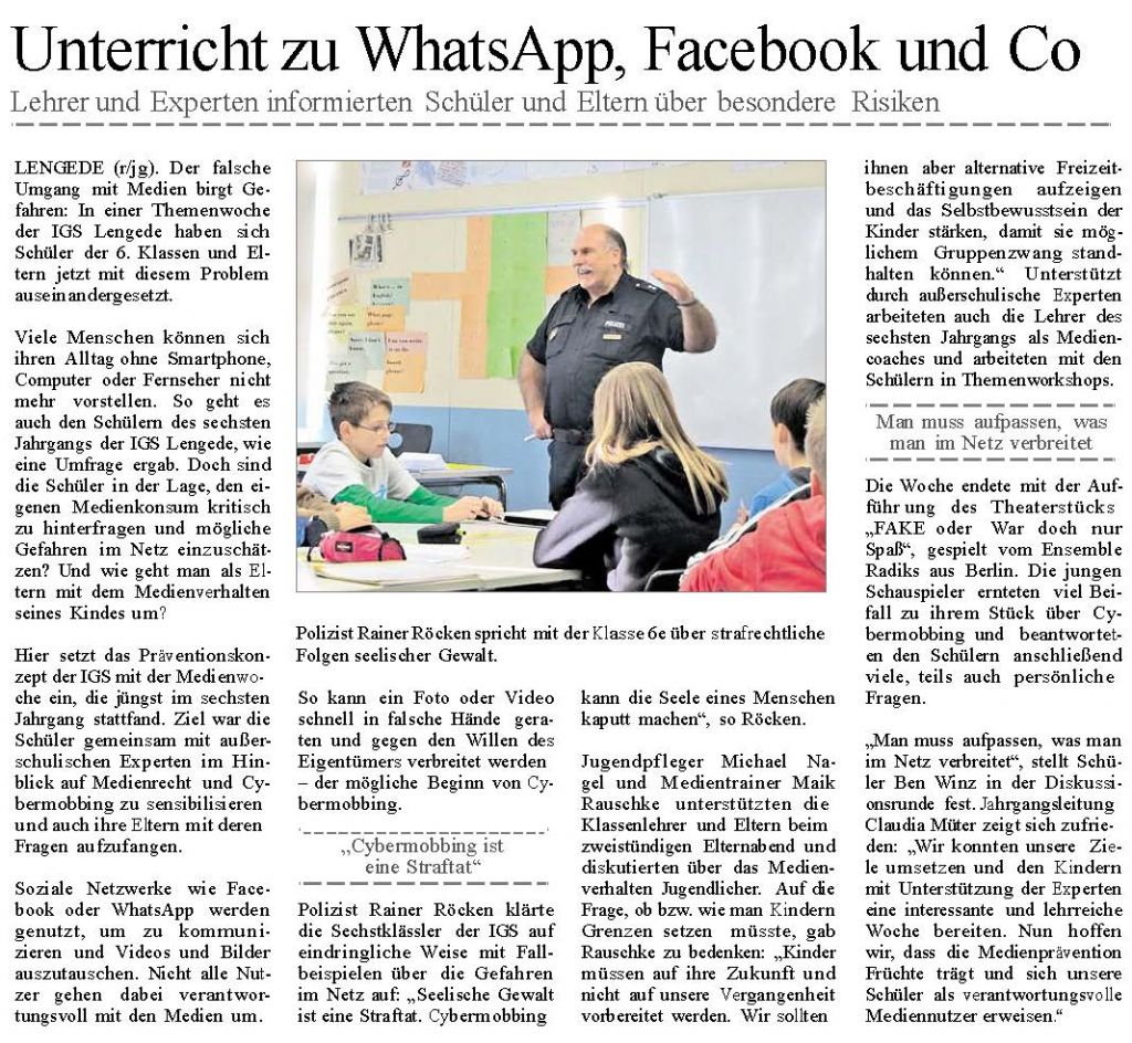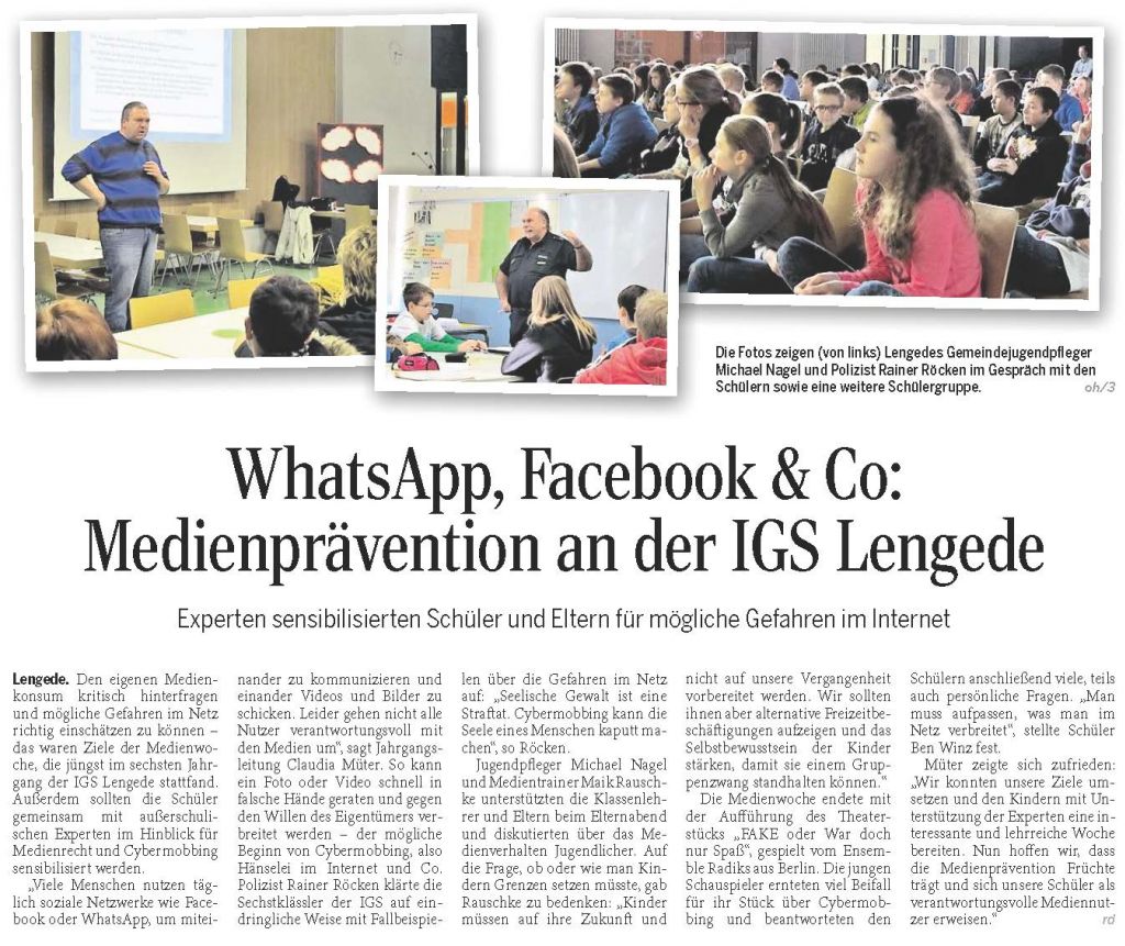 PAZ: "WhatsApp, Facebook & Co: Medienprävention an der IGS Lengede"