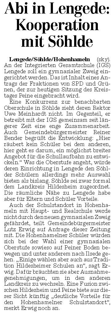 HAZ: "Abi in Lengede: Kooperation mit Söhlde"