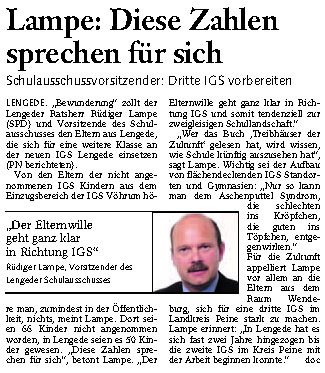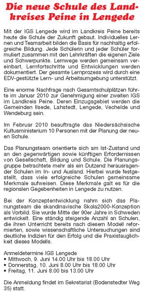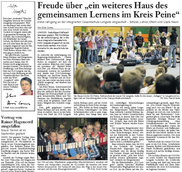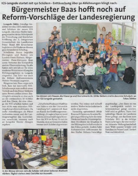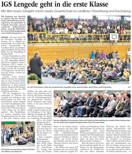 PAZ: "IGS Lengede geht in die erste Klasse"