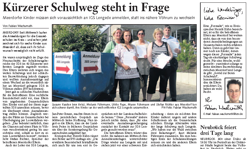 PN: "Lengeder Elterngruppe kämpft um sechste Klasse an der neuen IGS"