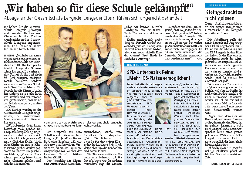 PN: "Drei Kinder und viele Sorgen um die Schulversorgung in Lengede"