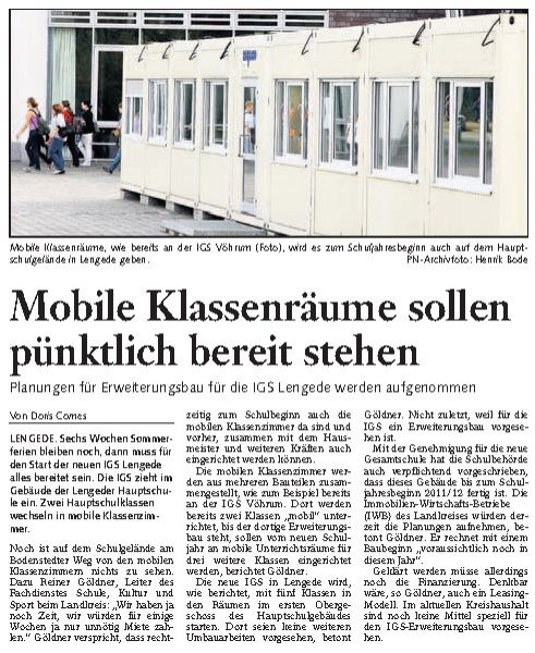 PN: "Mobile Klassenräume sollten pünktlich bereit stehen"