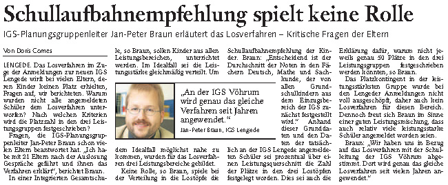 PN: "200 Anmeldungen für IGS Lengede, das Los muss entscheiden"