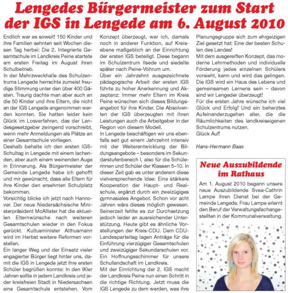 RSB: "Lengedes Bürgermeister zum Start der IGS in Lengede am 6. August"