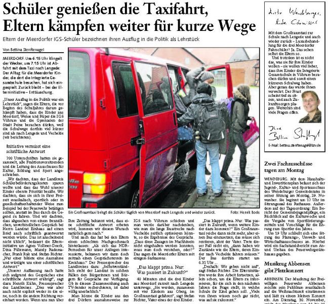 PN: "Schüler genießen die Taxifahrt, Eltern kämpfen weiter für kurze Wege"