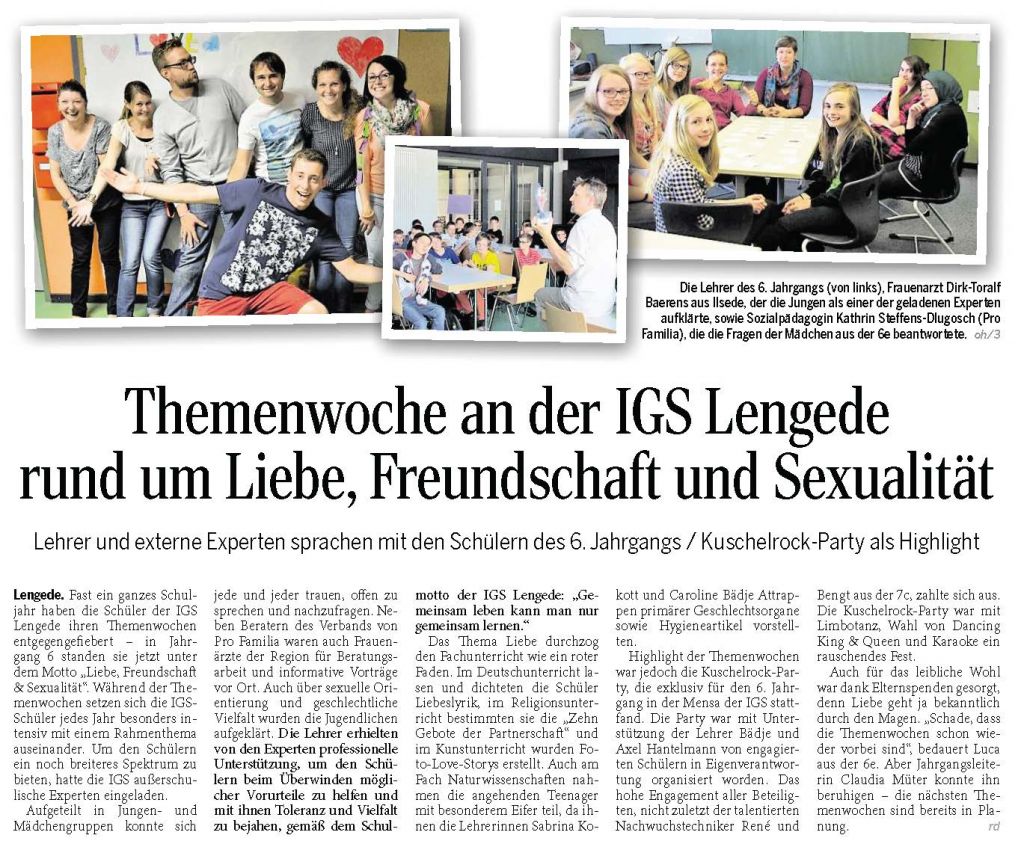 PAZ: "Themenwoche an der IGS Lengede rund um Liebe, Freundschaft und Sexualität"