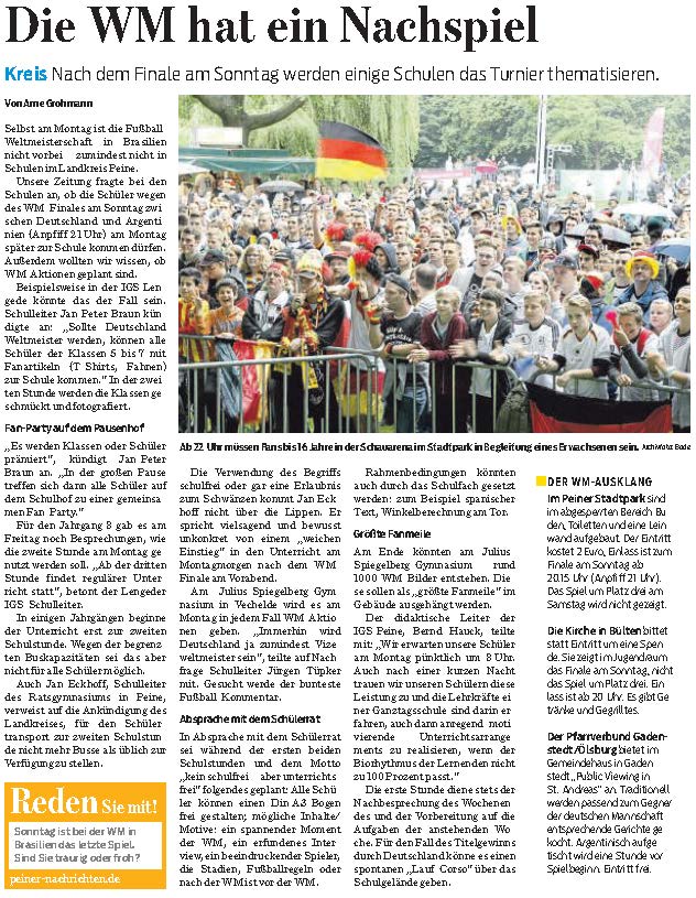 PN: "So feierten Schulen den WM-Titel"