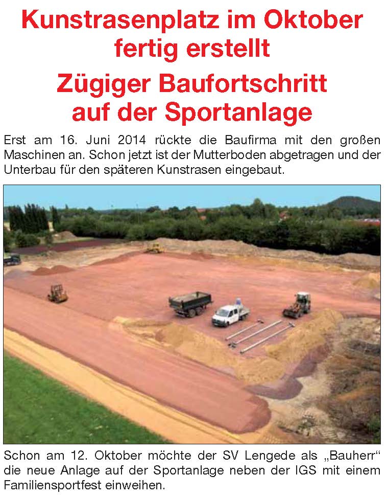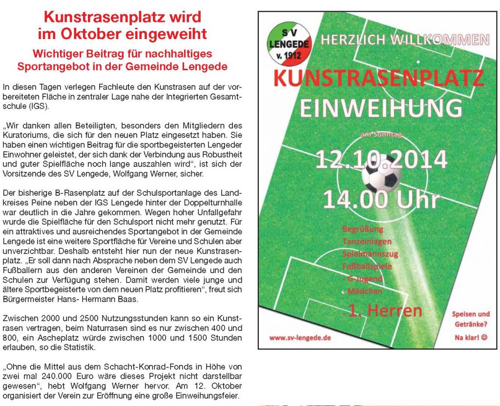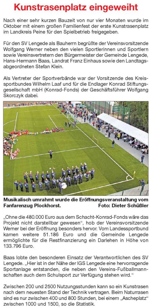 PAZ: "Kunstrasenplatz beim SV Lengede mit großem Festakt eröffnet"