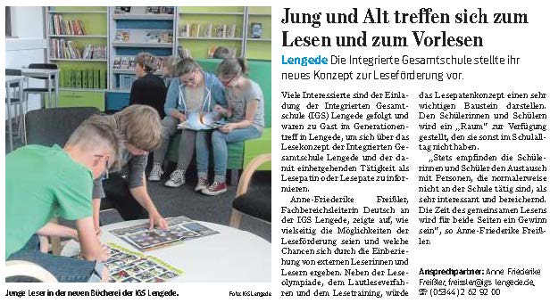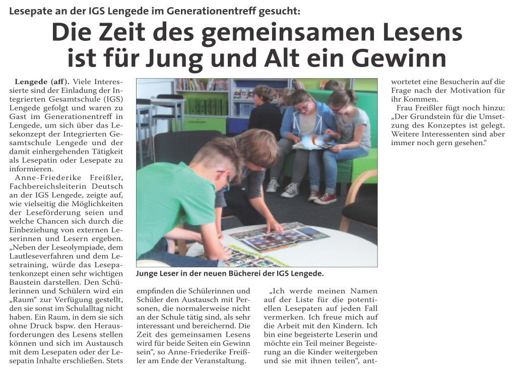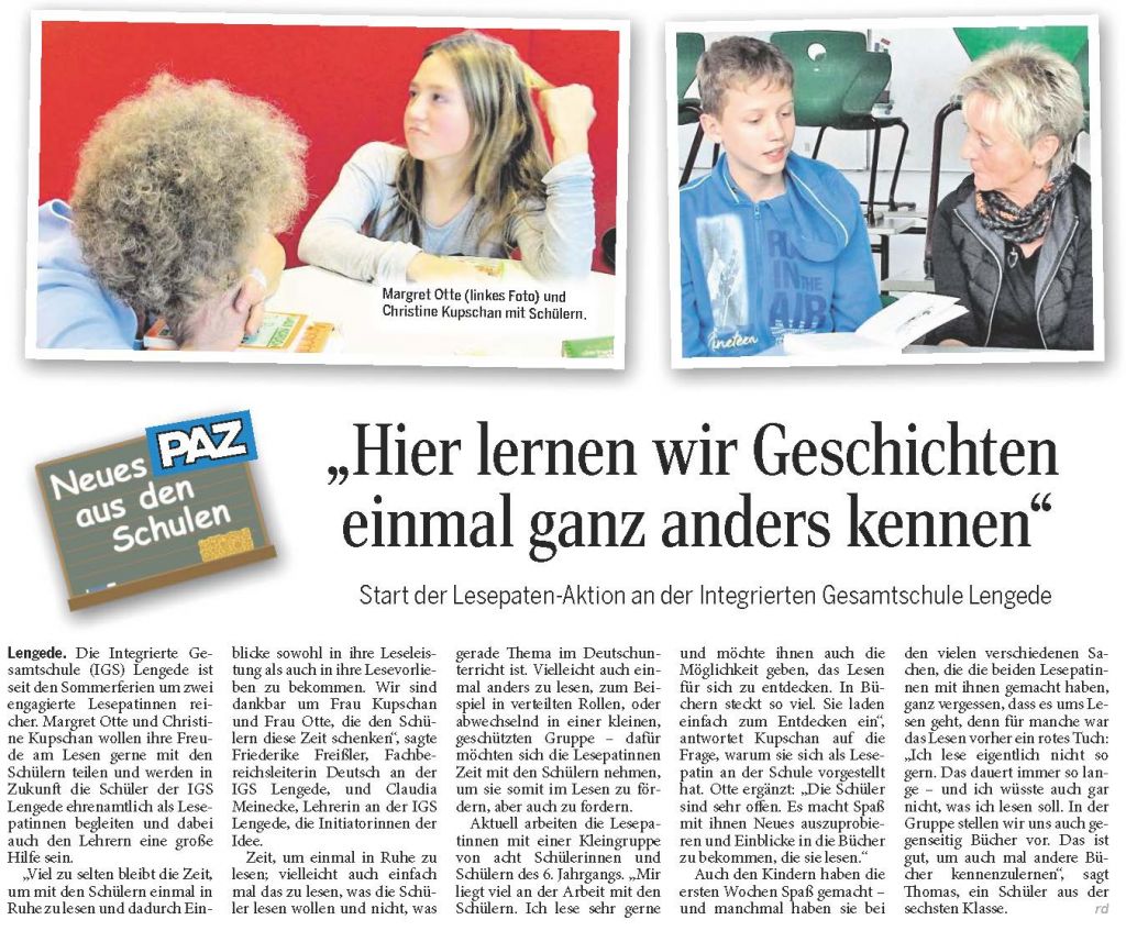 PAZ: "Lesepaten-Projekt an der IGS Lengede: „Lesebegeisterung an Schüler weitergeben“"