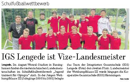 PN: "IGS Lengede ist Vize-Landesmeister"
