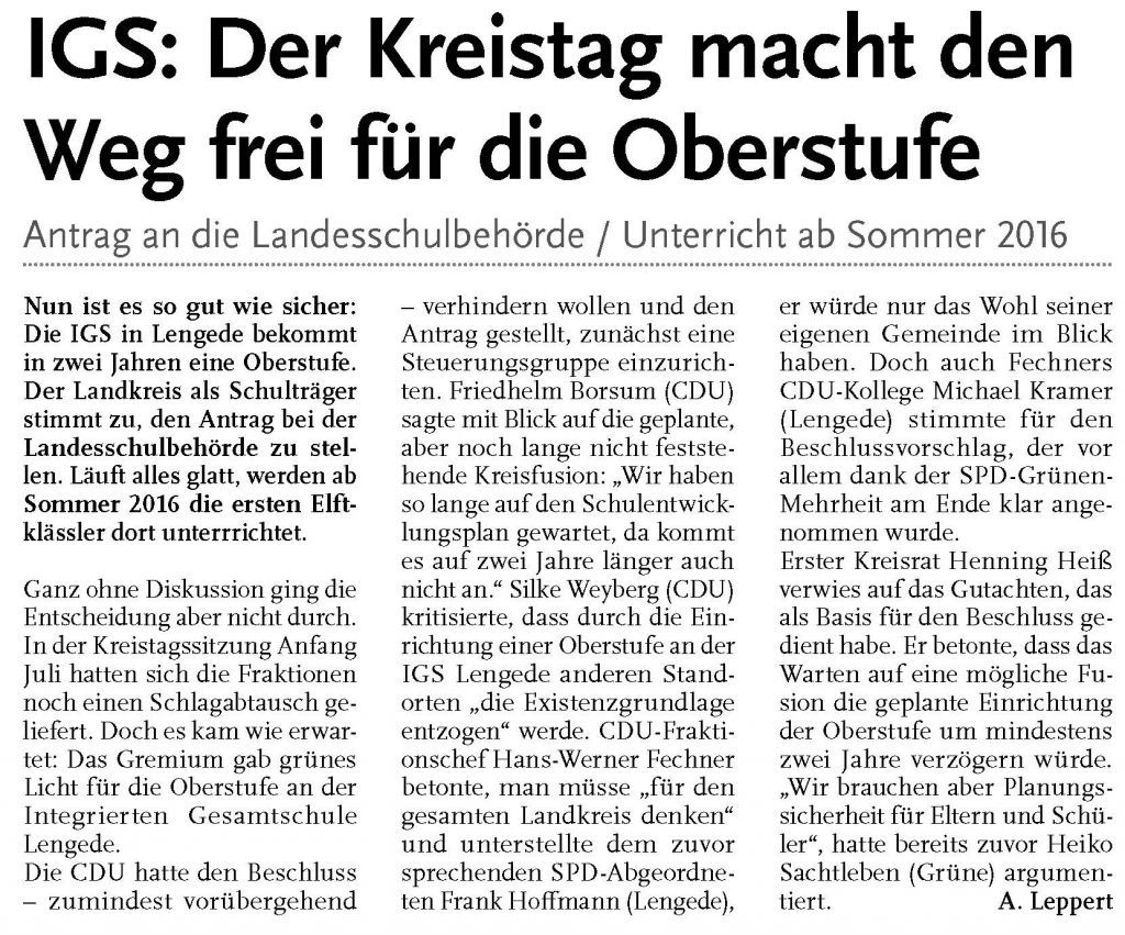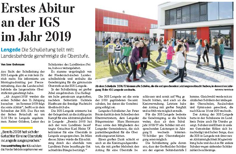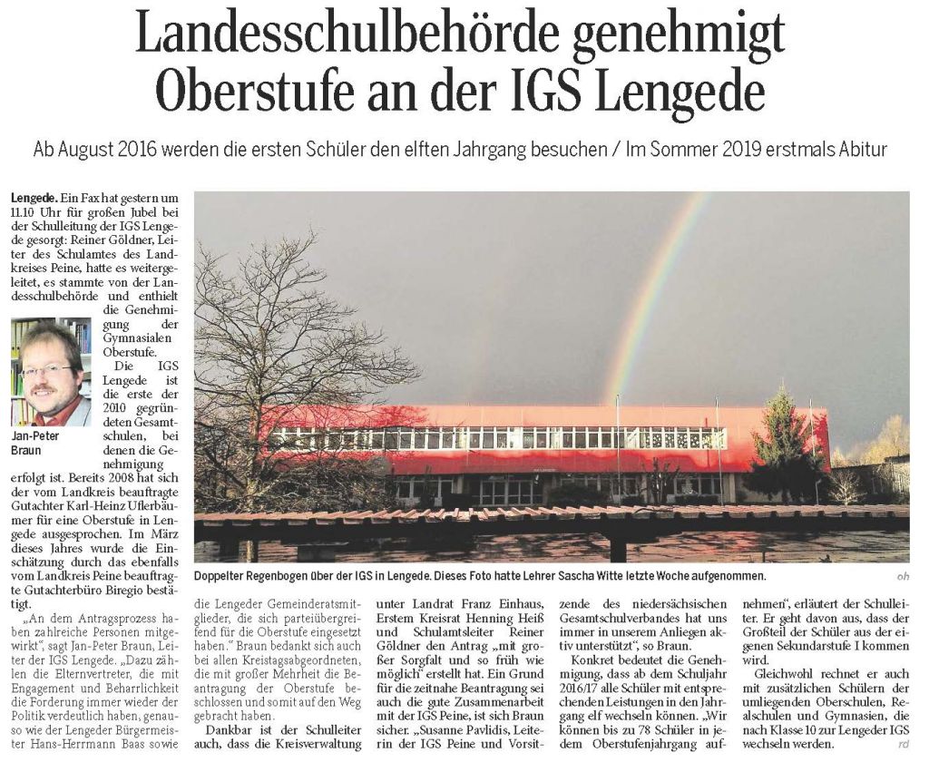 PAZ: "Grünes Licht für die IGS Lengede: Ab 2016/2017 gibt es eine Oberstufe"