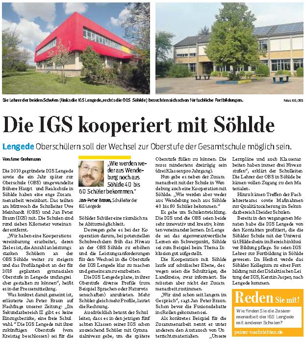 PN: "Die IGS kooperiert mit Söhlde"