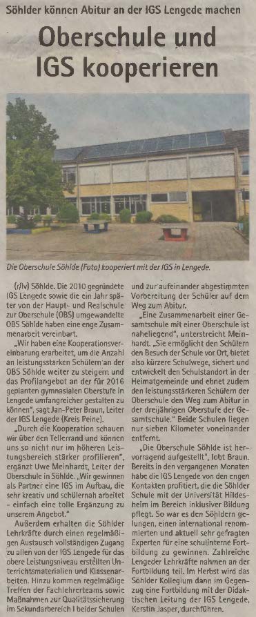 PAZ: "Integrierte Gesamtschule Lengede und Oberschule Söhlde vereinbaren Kooperation"